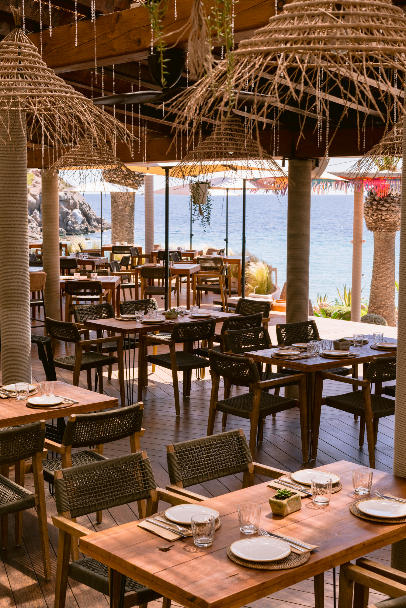 Located on a-raised terrace overlooking the sea, Aiyanna offers a unique view of the whole Cala Nova beach. Our terrace is decked out in wood, coconut and bamboo, complemented by our Guatemalan canopies that provide a shade full of movements and colours.